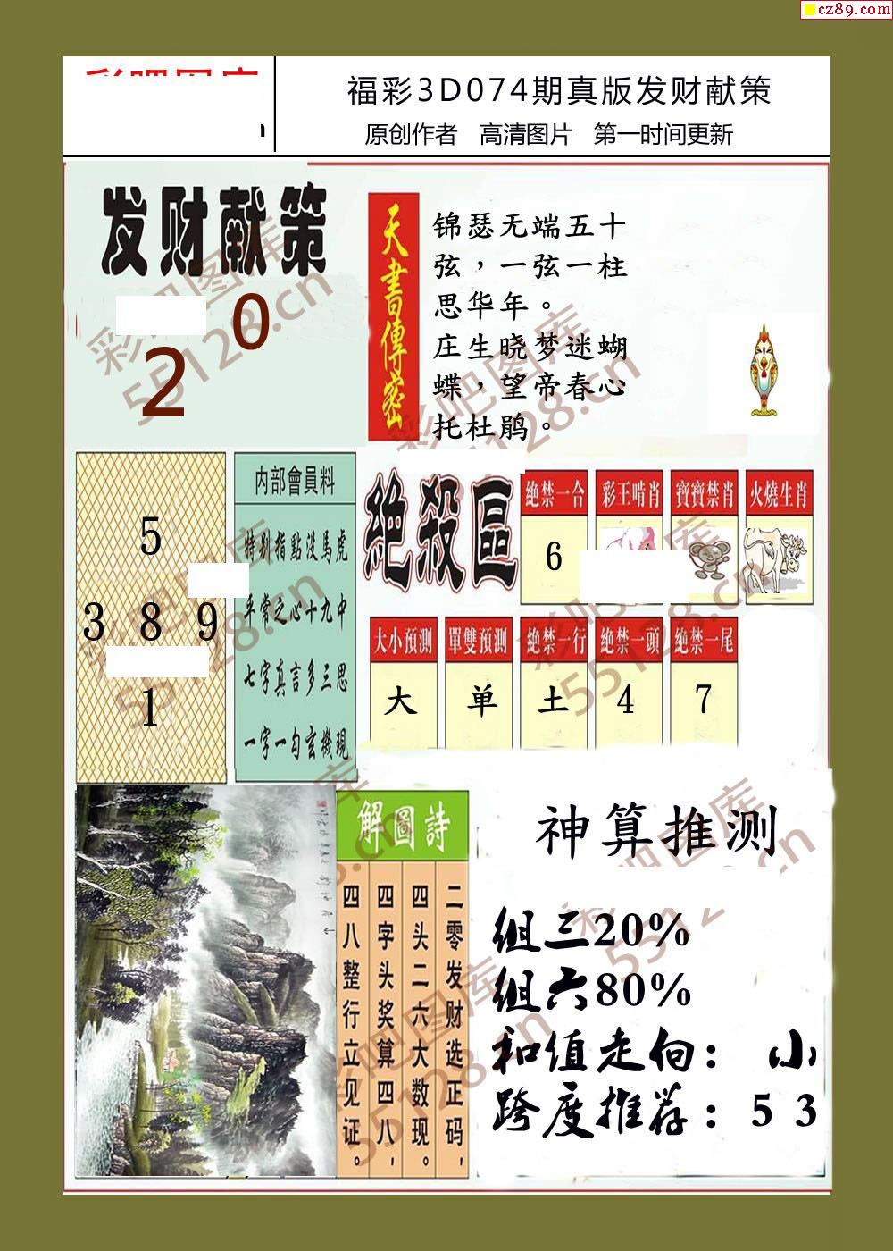 > 发财献策26年074期福彩3d字画报
