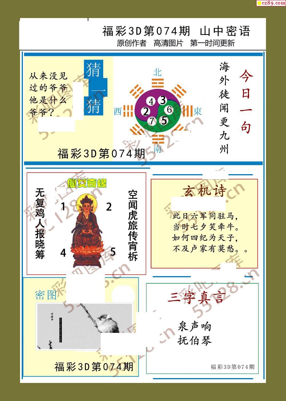 福彩3d26年074期山中密语彩报